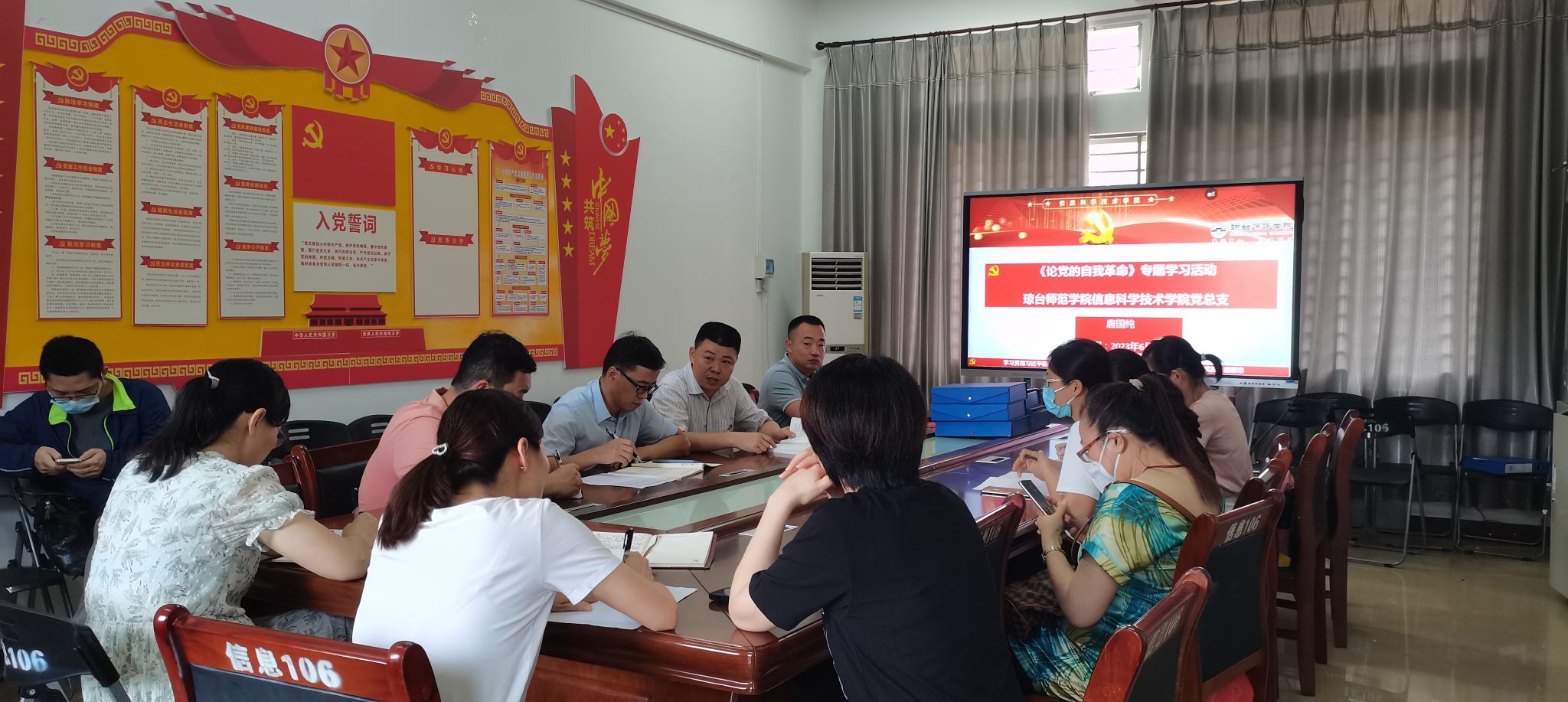 自我革命是以习近平同志为核心的党中央提出的新时代管党治党新理念新要求,是自我警醒、自我否定、自我反思、自我超越的一种积极的、主动的革命性行为。自我革命对新时代全面推进国家治理体系和治理能力现代化、深入推进全面从严治党,具有十分重要的意义。为深入学习贯彻习近平新时代中国特色社会主义思想主题教育和党的二十大精神,6月13日中午,信息科学技术学院党总支在理A103会议室开展“论党的自我革命”专题学习。本次会议由党总支书记唐国纯主持和领学,全体教工党员参加。