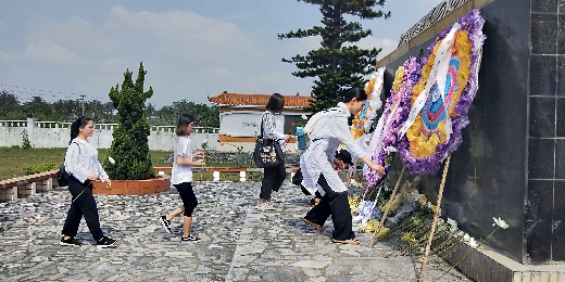 上午9:50分,所有参加扫墓活动的师生在美术楼后集合,乘车到达烈士陵园。在负责人的组织下,大家集合成列,手拿鲜花,认真地听从陈导对三位烈士的介绍,随后有序的向先烈献花,表达我们崇高的敬意。然后师生共同在烈士墓碑前低头鞠躬默哀,寄托对烈士的哀思。接下来,同学们拿着扫帚,仔细地为先烈们打扫他们安息的地方,还他们一个干净的栖息地。在此过程中,很幸运地看到了三位烈士的后代前来祭祀。最后,我们认真阅读了三位烈士身前事迹,了解了在腥风血雨的战争岁月,中华民族的优秀儿女们为了人民的幸福生活,是如何艰苦奋斗的。我们也更能深切地体会到,幸福美好的生活来之不易。