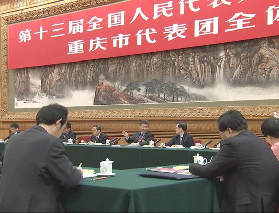 习近平认真倾听了代表们的发言,他为马善祥、朱明跃等代表和3300万山城人民点赞。