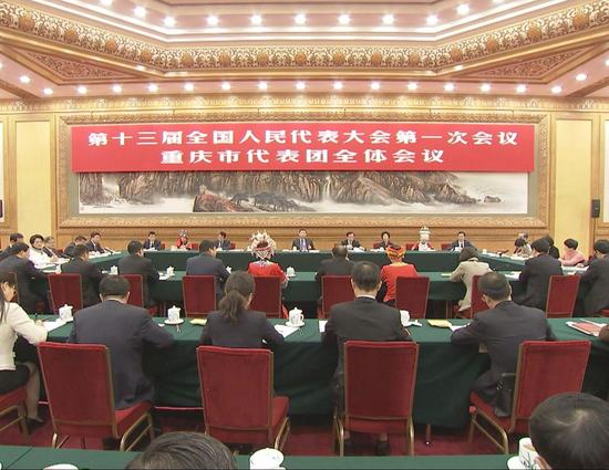 根据会议日程,3月10日上午代表团举行全体会议审议“两高”报告。重庆团共有八位代表在会上做了发言。与内蒙古、广东、山东三个代表团不同的是,除党委、政府主要负责同志发言外,重庆团的发言代表中还包括市人大常委会主任。