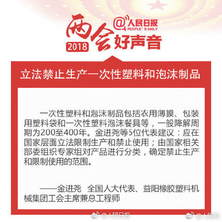 ⑤金进尧:建议立法禁止生产一次性塑料和泡沫制品