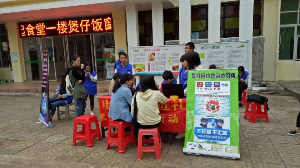 此次活动地点为我校食堂门口,活动主要内容主要为:电脑故障的维修、文明上网及网络防诈骗知识宣传等,旨在为我校师生提供方便。