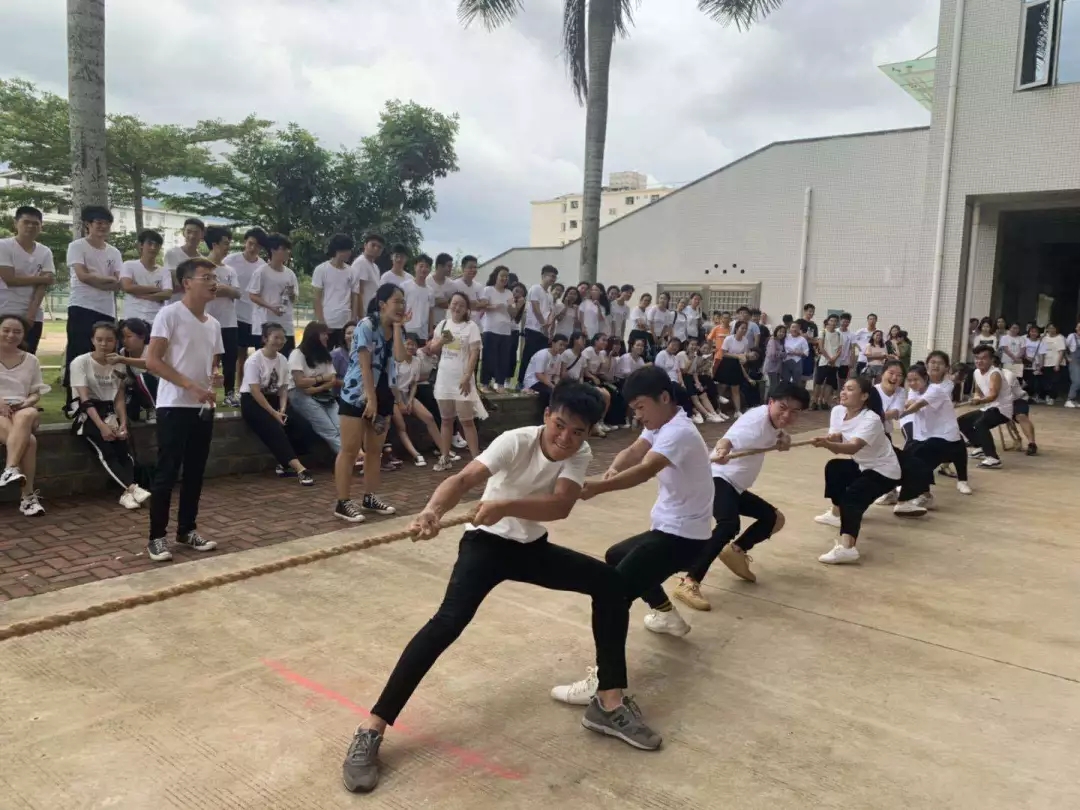 当比赛的哨声响起,只见参赛的同学们紧握长绳,鼓足了劲拼命往后拉!其他同学也都在队伍旁边呐喊助阵!哨子声、呐喊声此起彼伏,现场激烈的比赛将整个活动推到了高潮!