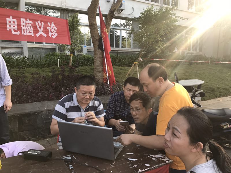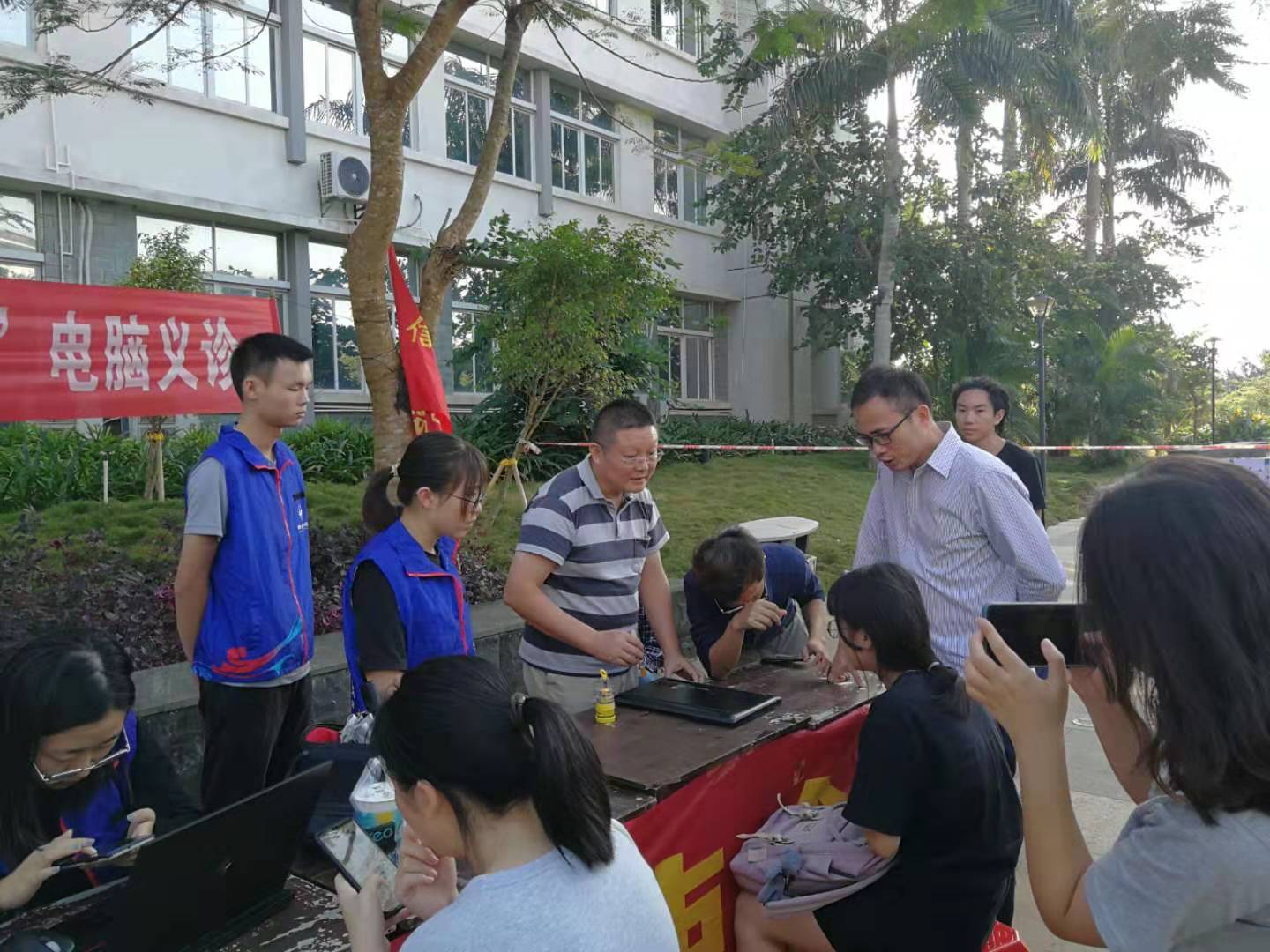 根据《琼台师范学院“不忘初心、牢记使命”主题教育实施方案》的文件精神,我院党总支于实验¥D档北侧开展“党员服务做表率”电脑义诊活动。